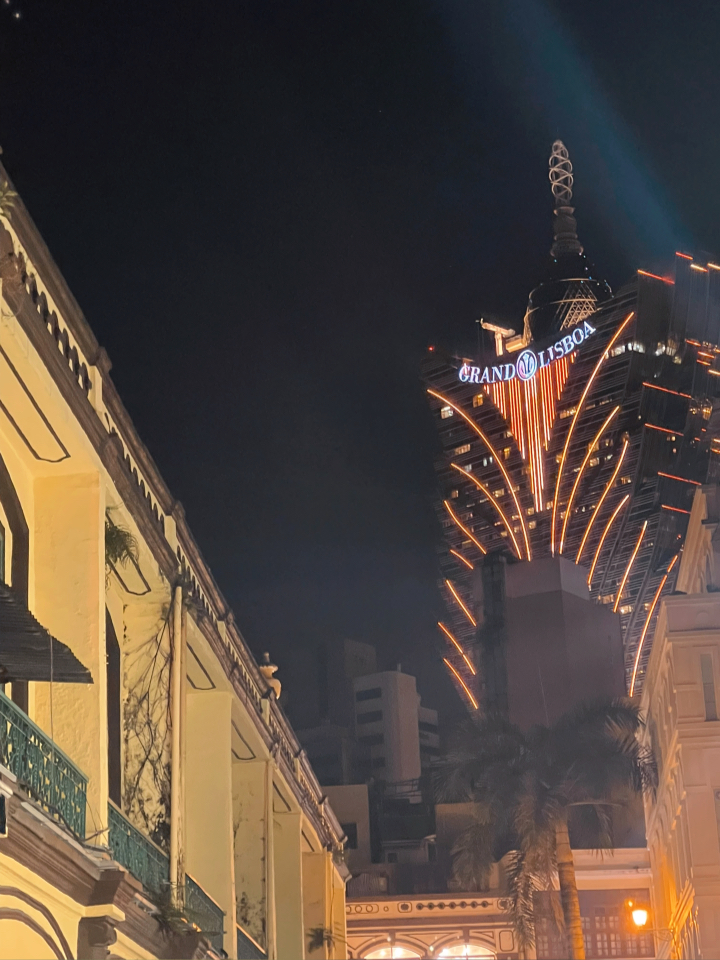 (走到舞台边缘,俯瞰着澳门的夜景)